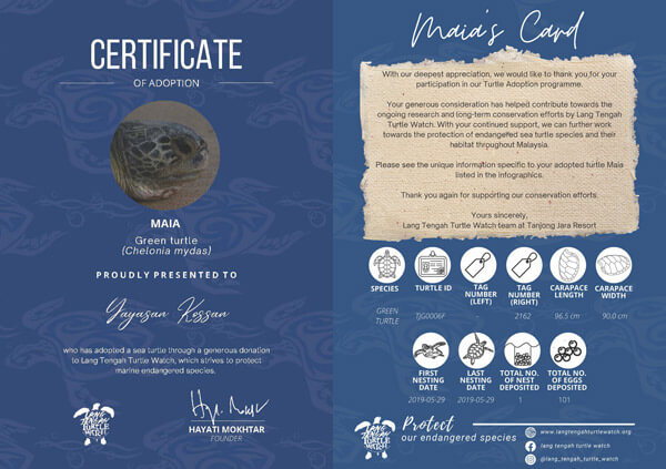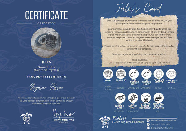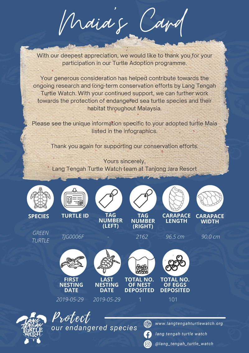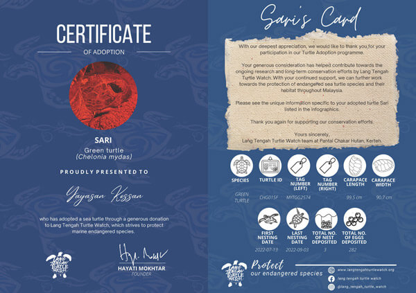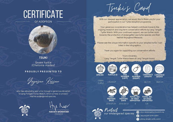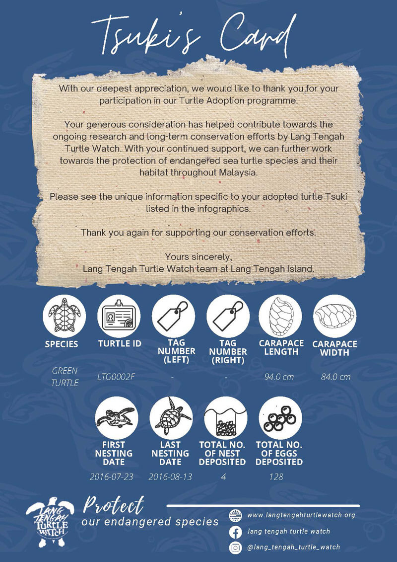 Social Project: Adopt A Friend: Collaboration with Lang Tengah Turtle Watch (LTTW)